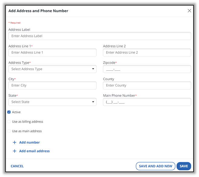 - In the Personal tab, scroll down to the Addresses | Phone Numbers tile, and select Add.