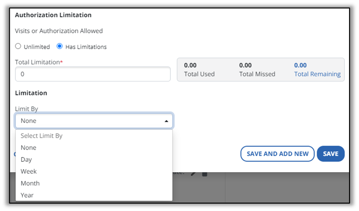 b. Authorization Limitations can be added to restrict the amount of time recorded within a specific range of days, weeks, months, or years.