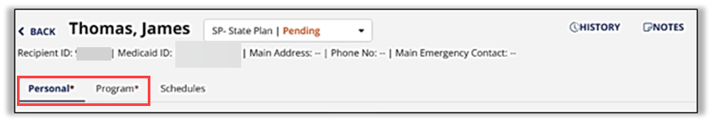 - The Recipient record loads in a Pending status. There are required fields in the Personal and Program tabs. All required fields will have an asterisk (*).