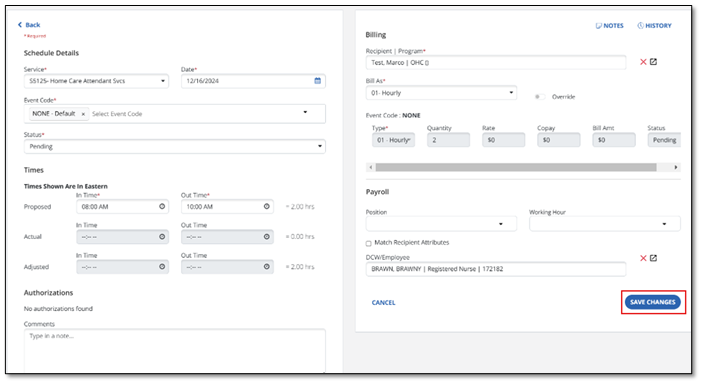 When you need to reschedule a recipient visit, you will want to edit a schedule by updating the date, times, or DCW/Employee.