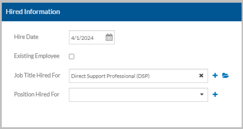 Note: If Employment Tracking is enabled, you will not be prompted to enter a Job Title or Hire Date. The Job Title and Hire Date will be entered when you run the Employment Tracking Wizard.
