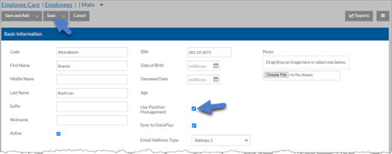 Note: Make sure you select Use Position Management, if you want to run the Employment Tracking Wizard or use Basic Position Tracking for this employee.
