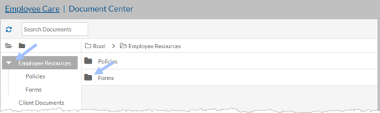 Select Employee Care from the main menu and then select Document Center from the Resources card.