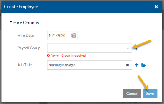 Note: If Employment Tracking is enabled, you will not be prompted to enter a Job Title or Hire Date. The Job Title and Hire Date will be entered when you run the Employment Tracking Wizard.
