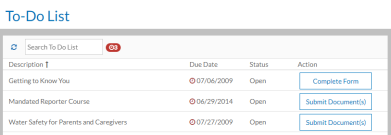 As your job requirements come due, you will see a task appear for you to complete for that job requirement. A job requirement is a training class, a document you need to sign, a document you need to submit or other item you need to complete. You can view and complete the tasks (and thus fulfilling the job requirement) from your Employee To-Do List or from the Tasks dashboard. You can also complete job requirements from your list of job requirements.