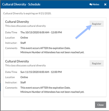 Select Register next to the one you want to attend.
