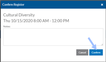 A confirmation window opens. Enter any notes as needed and select Confirm.