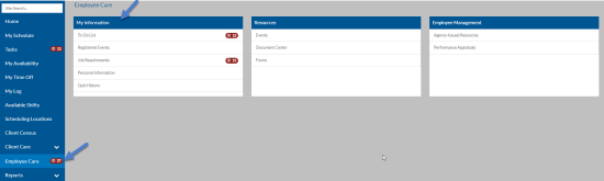 From the My Information card you can view your to-do list, view upcoming events that you are registered for, review your job requirements and view or update your personal information.