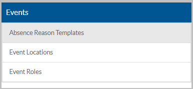 This setup list: Is used here: For: Absence Reason Templates A list of prefills to use when taking event attendance when an attendee is absent. Event Locations A list of locations where an event is held. Event Roles The list of event roles that determines security access to view and manage attendees as well as take attendance. The descriptions and items in this list must be exact. Sandata implementation will set these up. - Select anywhere on an existing card to open it for viewing and editing or select the + to add a new one.