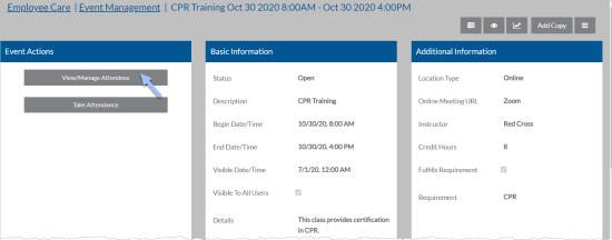 Select Employee Care from the main menu and then select Event Management from the Human Resources card.