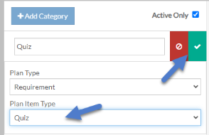 Employee Requirement Category - This is a one-time setup item to create a category for Quizzes with a Plan Item Type of Quiz. It is similar to Events in that there are not any additional setup lists to add to it from this screen.