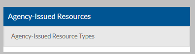This setup list: Is used here: For: Agency-Issued Resource Types The type of resources, such as computer, cell phone, keys. etc. - Select anywhere on an existing card to open it for viewing and editing or select the + to add a new one.