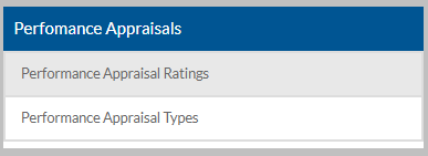 This setup list: Is used here: For: Performance Appraisal Ratings Performance Appraisals Performance Appraisal Ratings can be used to describe the outcome of the employee’s review such as exceeds expectations, meets expectations or needs improvement. Performance Appraisal Types Performance Appraisals Performance Appraisal Types are used to describe the type of appraisal conducted such as 90-day review or yearly appraisal. - Select anywhere on an existing card to open it for viewing and editing or select the + to add a new one.