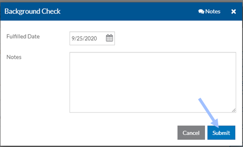A confirmation window will open. Enter the Fulfilled Date as well as number of credit hours and/or notes as required and then select Submit.