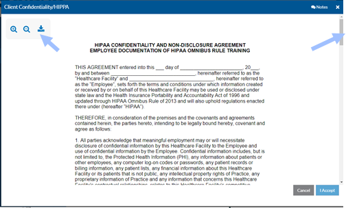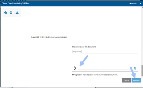 Sign it using your mouse, stylus or finger (depending on your device), enter any credit hours and/or notes as required and click I Accept