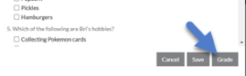 When you are ready, answer the questions. If you are interrupted or need more time you can click Save and come back and finish the quiz later. Otherwise, select Grade to auto-score the quiz in real time.