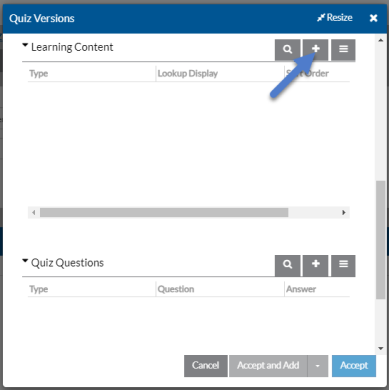 Select the + on the Quiz Versions card to create a new version of the quiz or select an exiting one to modify it.