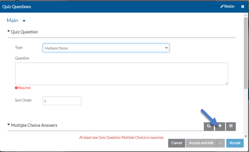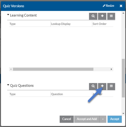 Scroll down and select the + on the Quiz Questions card to add a new question or select an existing one to modify it.