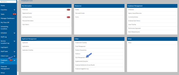 Select Employee Care from the main menu and then select Quiz Management from the Other card.