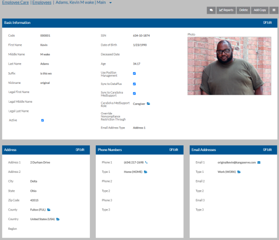 - Sync to CaraSolva MedSupport - If you have licensed Sandata eMar integration for Client Care select this option to sync this employee’s information to Sandata eMar (CaraSolva MedSupport)
