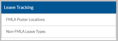 This setup list: Is used here: For: FMLA Poster Locations Employee Leave Tracking FMLA poster locations are indicated in the FMLA Eligibility and Rights Notice to let employee know where they can find FMLA information.