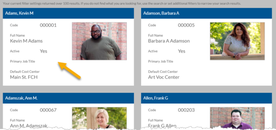 Select anywhere on an Employee card to open the Employee detail screen.