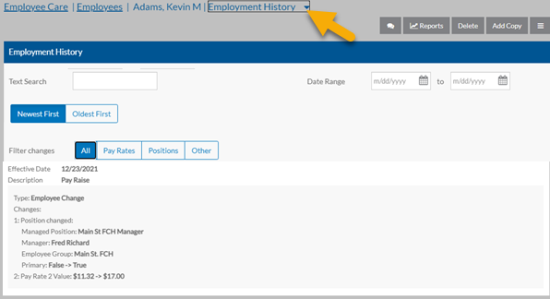 After it has processed, you can view the updates on the employee's Employment History tab.