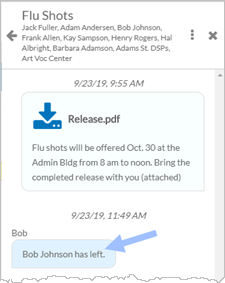 Step Results: You will return to the list of conversations and the conversation you left will no longer appear in the list of messages. The others in the conversation will see a message that you left.