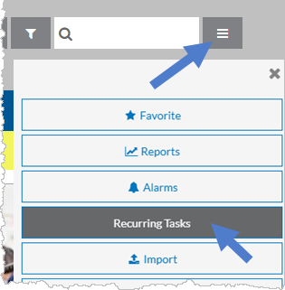 To manage recurring tasks for multiple items, from the Index screen, select the Options icon and then select Recurring Tasks.