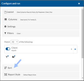 Select the Sort order list to sort the list of reports in either ascending or descending order.
