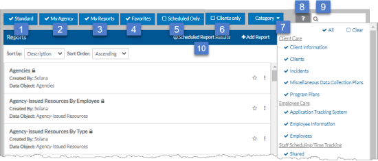DataPlus includes a library of standard reports for users to run quickly and easily. The reports that appear will be based on the modules your agencies have licensed.