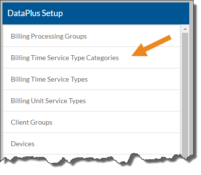 Select Billing Time Service Type Categories on theDataPlus Setup card.