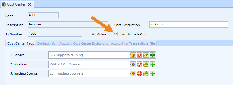 Make sure the Active and Sync to DataPlus check boxes are selected.