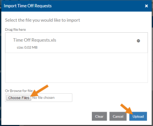 Drag the Microsoft Excel file(s) you want to import or select Choose Files (to browse for the file) and click Upload.