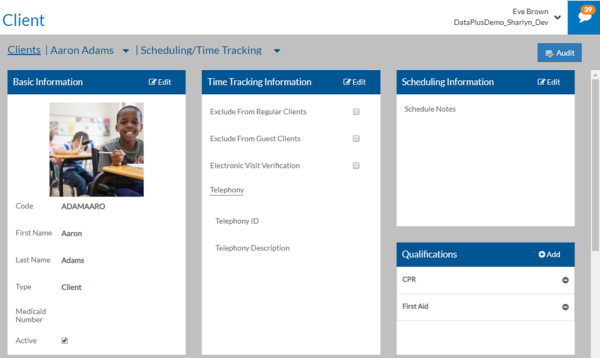 Note: By default only those clients with a Status of "Active" and a Client Type of "Client" appear in the card list. You can click the Filter icon and clear the Active Only check box to view both active and inactive clients and/or clear the Client Only check box to view placeholder and indirect clients as well. You can also select to see only those client’s that have Use EVV selected.