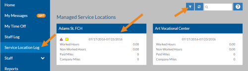 Click Service Location Log in the menu, set any needed filters and then select the appropriate Service Location Log card.