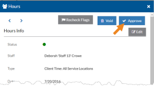 Note: If you do not see the Approve button on a staff or the Approve Day link, either there are no transactions ready to be approved or you do not have security permissions to approve.