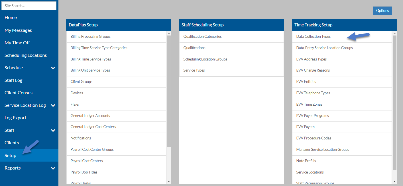 If you only have Time Tracking, then select Data Collection Types from the Time Tracking Setup card.