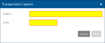 If Transportation Type is YesNo or Choose Type, then select the + Add on the Transportation Captions card, complete the following information and click Save.