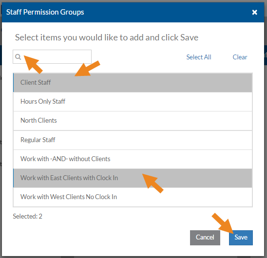 Select the staff permission groups you want to assign to this service location and then click Save.