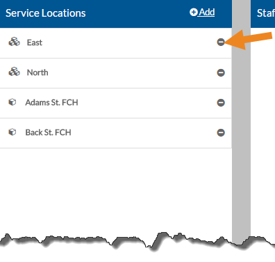 Select the minus sign next to a service location or data-entry service location group to remove it from the data collection type.