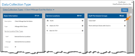 Select the minus sign next to a staff permission group to remove it from the data collection type.