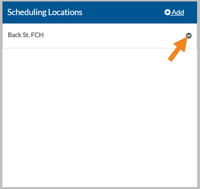 Step Results: The scheduling locations now appear on the Scheduling Locations card. Select the minus sign next to a scheduling location if you need to remove it from the from the device.