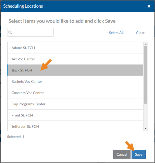 Select the applicable Scheduling Location(s) to associate with this device and then select Save.