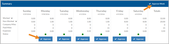 Select Approve under the day or Approve Week in the banner of the Summary card.
