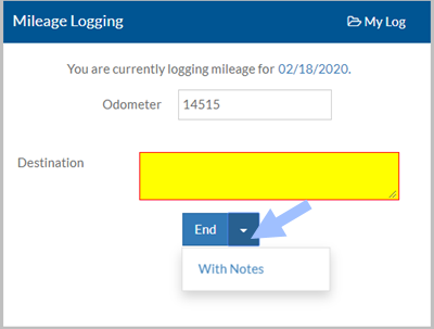 Click End or End with Notes to complete your Mileage with Clients Log transaction.