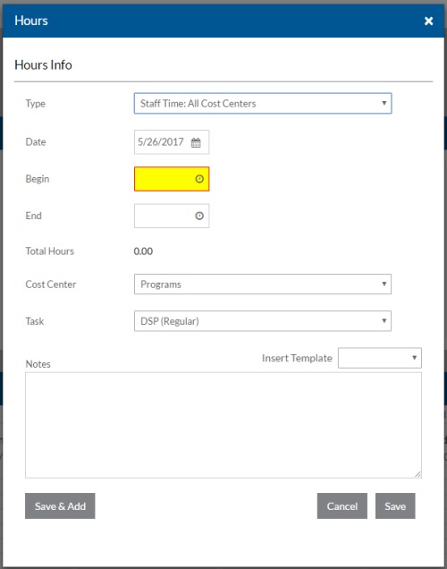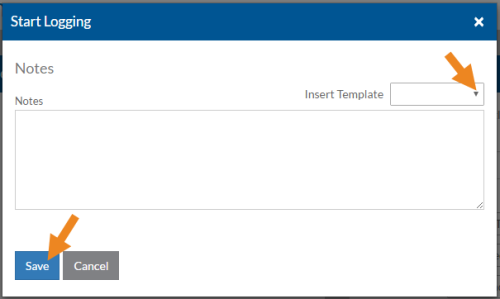Enter any notes or select a pre-defined note from the Insert Template list and then select Save. Notes may or may not be required depending on your agency setup.