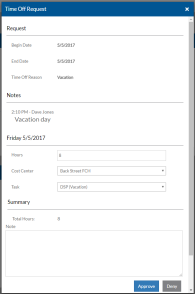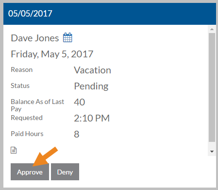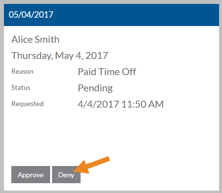 When your staff submits a time off request, you will then need to approve or deny the request.