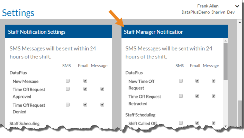 If you set up your contact information and staff manager notification settings under User Settings, you can be notified whenever staff requests or cancels time off.