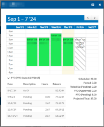 Note: Select the calendar icon next to the staff’s name to view the time of request in the context of the staff’s schedule for that week as well as the staff’s time off activity.